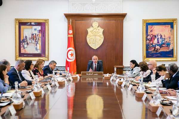 وفي افتتاحه للجلسة جدّد رئيس الحكومة شكره وامتنانه لسيادة رئيس الجمهورية للثقة التي حظي بها لقيادة الفريق الحكومي في المرحلة القادمة، مؤكّدا على ان حسن التّعهد بهذه الامانة و المسؤولية تتطلب تعبئة كل الطاقات والمجهودات لمزيد دفع عمل مختلف المرافق العمومية وتحسين الخدمات الموجهة للمواطنين في اطار الثوابت الوطنية المتعلقة بكسب رهانات التعويل على الذات والتشجيع على الاستثمار وتعزيز الدور الاجتماعي للدولة في مختلف السياسات العمومية والبرامج الحكومية.