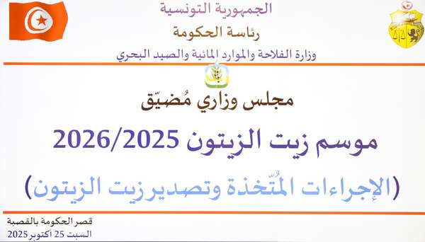 تكليف كافة الولاة بالاستعداد الجيد للموسم الجديد 2025-2026 على مستوى التنظيم والمتابعة وانطلاق الموسم وموعد إنهاءه وجني الزيتون ونقله وترويجه وتحويله.