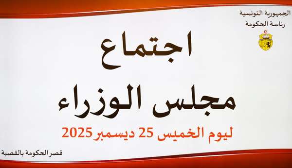 نيابة عن سيادة رئيس الجمهوريّة الأستاذ قيس سعيّد، أشرفت رئيسة الحكومة السيدة سارة الزعفراني الزنزري مساء اليوم، الخميس 25 ديسمبر 2025 بقصر الحكومة بالقصبة، على اجتماع مجلس الوزراء الذي خصّص للنّظر في عدد من مشاريع القوانين.