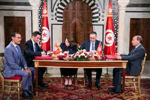 أشرف رئيس الحكومة السيد أحمد الحشّاني مساء اليوم الاثنين 24 جوان 2024 بقصر الحكومة بالقصبة، على جلسة عمل مع وفد من مجموعة البنك الدولي يتقدمه نائب رئيس البنك الدولي السيد عصمان ديون Osmane Dione، وذلك بحضور وزيرة الاقتصاد والتخطيط، ووزير الشؤون الاجتماعية، ووزيرة الصناعة والطاقة والمناجم، ووزير الصحة، ووزير الفلاحة والموارد المائية والصيد البحري، ووزير التعليم العالي والبحث العلمي والمكلف بوزارة الشؤون الثقافية.